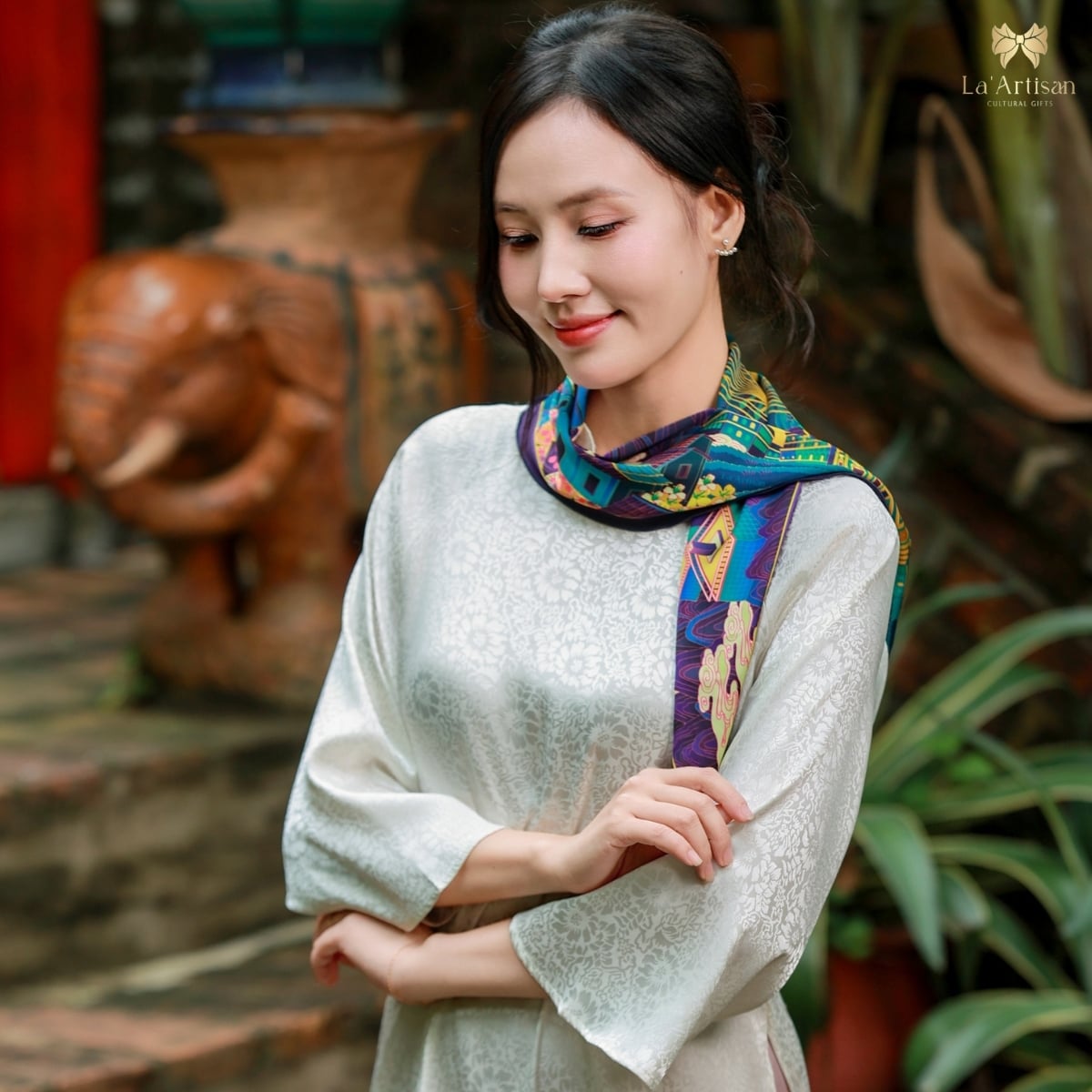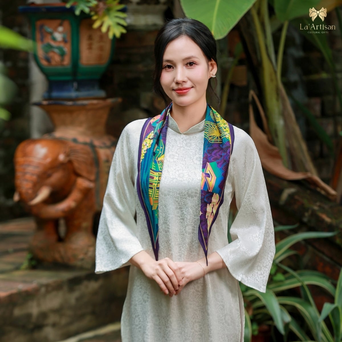 Chúng tôi muốn chiếc khăn không chỉ là sản phẩm hữu hình, mà là một hành trình được “cảm” bằng tất cả giác quan nơi những nhà thiết kế trẻ của La’Artisan gửi gắm tình yêu với đất, với người, và với cái đẹp chân thành của vùng đất ấy.