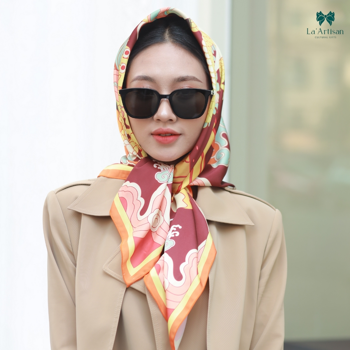 Chiếc khăn hoạ tiết này không chỉ là một điểm nhấn tinh tế trong phong cách cá nhân, mà còn gợi nhắc về nguồn cội dân tộc. Trong mỗi nếp gấp là một chương truyện, nơi tinh thần mẫu hệ Việt Nam được làm sống lại bằng nghệ thuật thị giác. Sử dụng khăn hoạ tiết cao cấp đồng nghĩa với việc bạn khoác lên mình một lớp di sản, nơi thời trang kết nối cùng tri thức lịch sử.